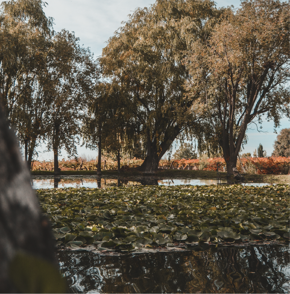 El Viñedo está emplazado en un un lugar mágico, rodeado de Olivos con una acogedora casa reciclada de piedra y laguna rodeada de enormes sauces donde la cordillera de los andes corona el paisaje por detrás con sus exuberantes montañas, alli fue que sus dueños Federico Moresco y Ana Bonnal, ambos con una historia ligada al campo y a la vitivinicultura, se enamoraron del lugar y decidieron afincarse.
